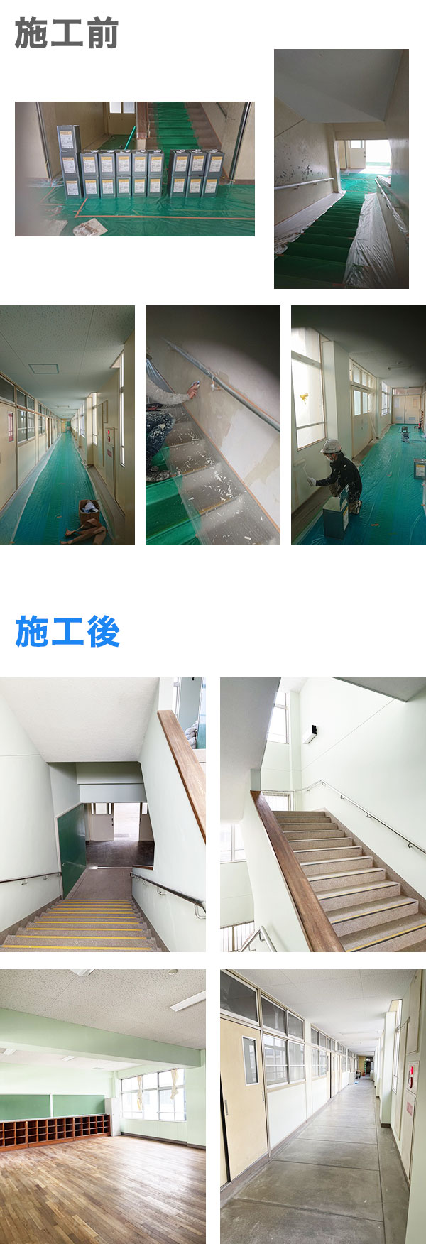 昨年12月26日から神戸市本多聞中学校の教室・廊下・階段等を消臭・抗菌・抗ウィルス効果のある塗料で施工しました。