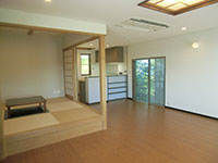 次にフルリフォームのプランを検討しましたが、建築年数に合わせて外壁や屋根の再塗装、内装クロスの貼り替えやフローリング・畳の新調、照明のLED化や水廻り等の住宅設備関係はほぼ全て新しく入れ替える事とし、新たな機能としてはオール電化・LDKへの床暖房の追加・太陽光発電の設置まで盛り込みました。